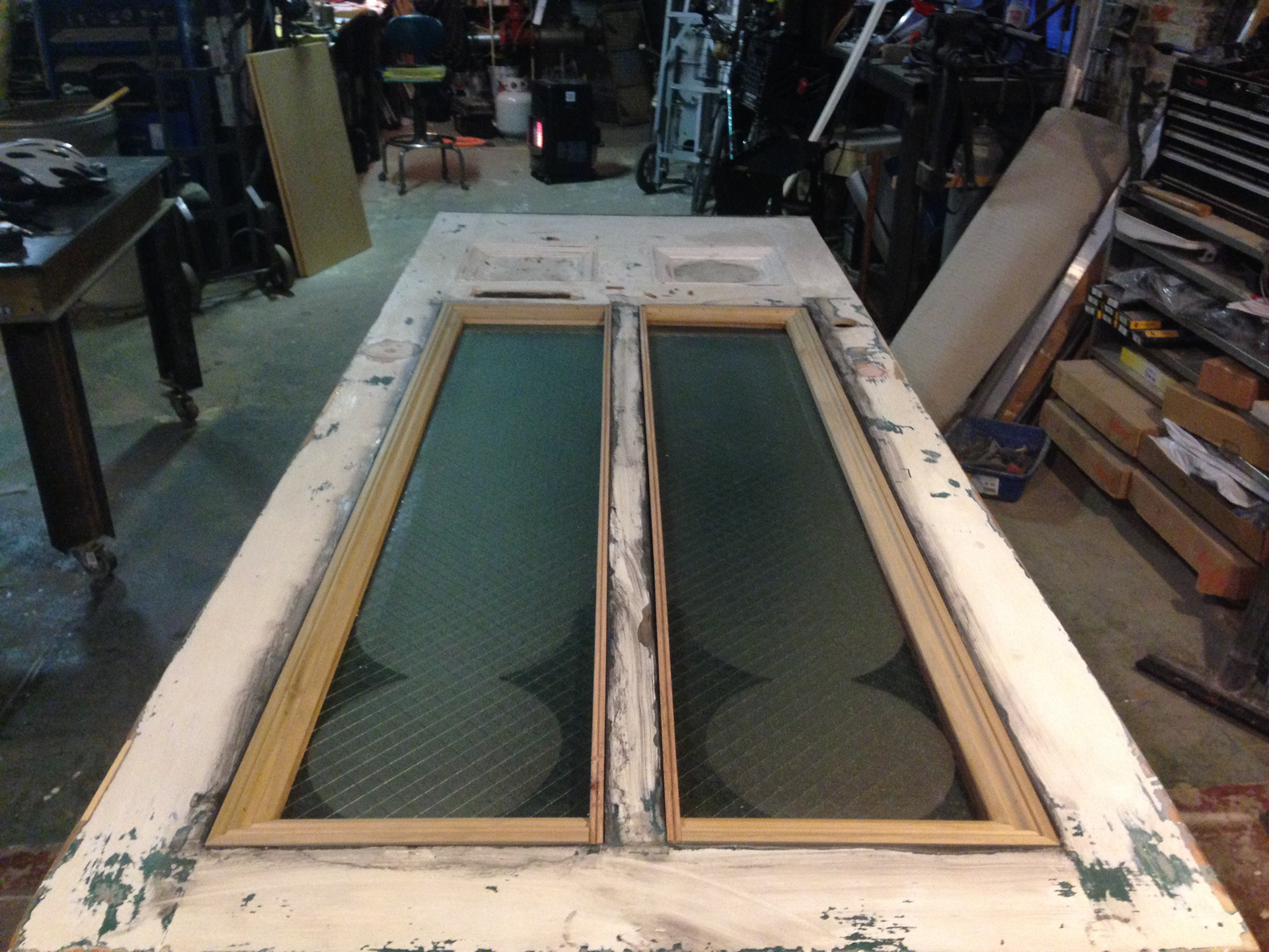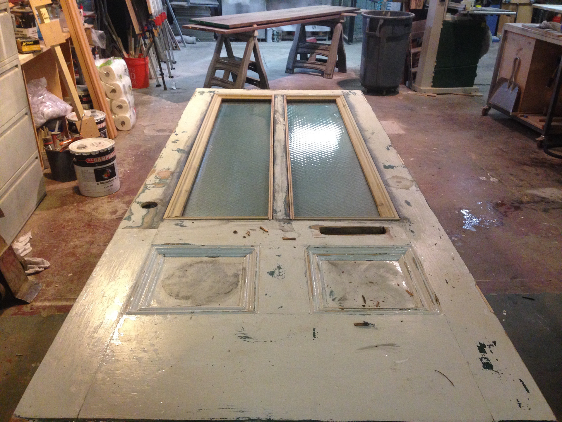 We refinished the front door to a client's house in Dorchester. Molding around the glass was replaced, a fresh coat of paint was applied, and new hardware was installed to bring the door back to its original splendor.
