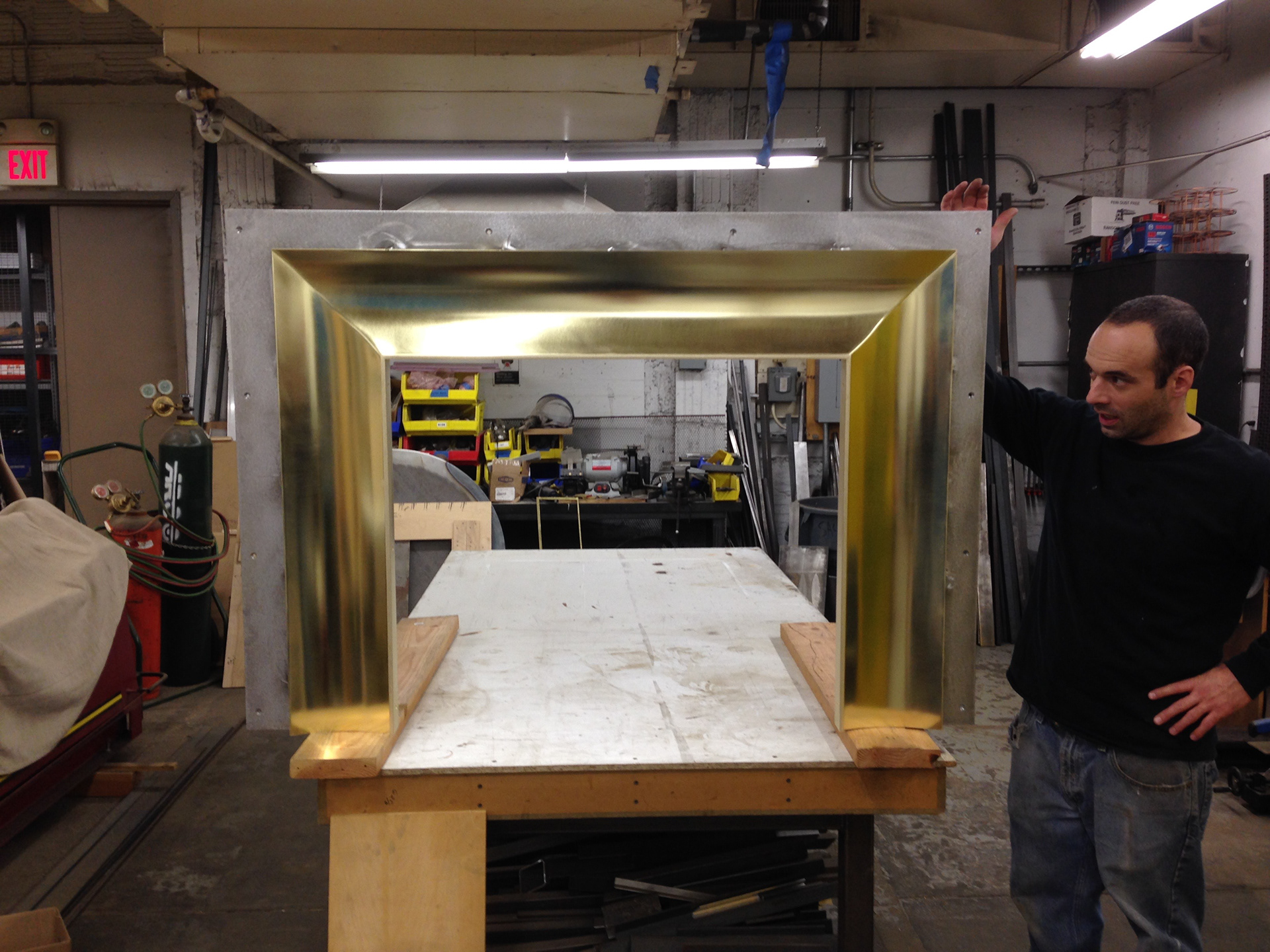 For this project we created a bronze surround for a client's fireplace. After the bronze pieces were made and polished, they were given a chemical patina for an aged look. We then transported all the pieces separately and reassembled the surround on-site.